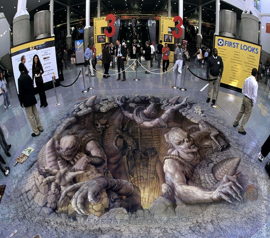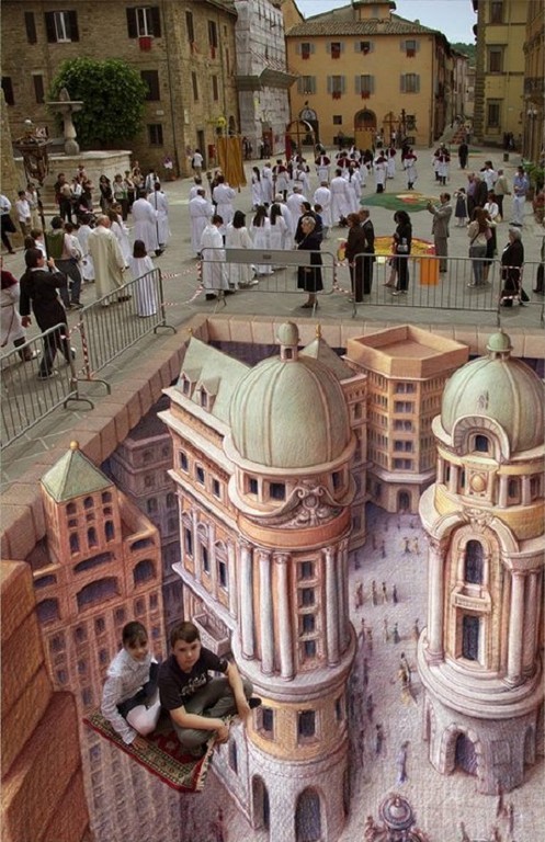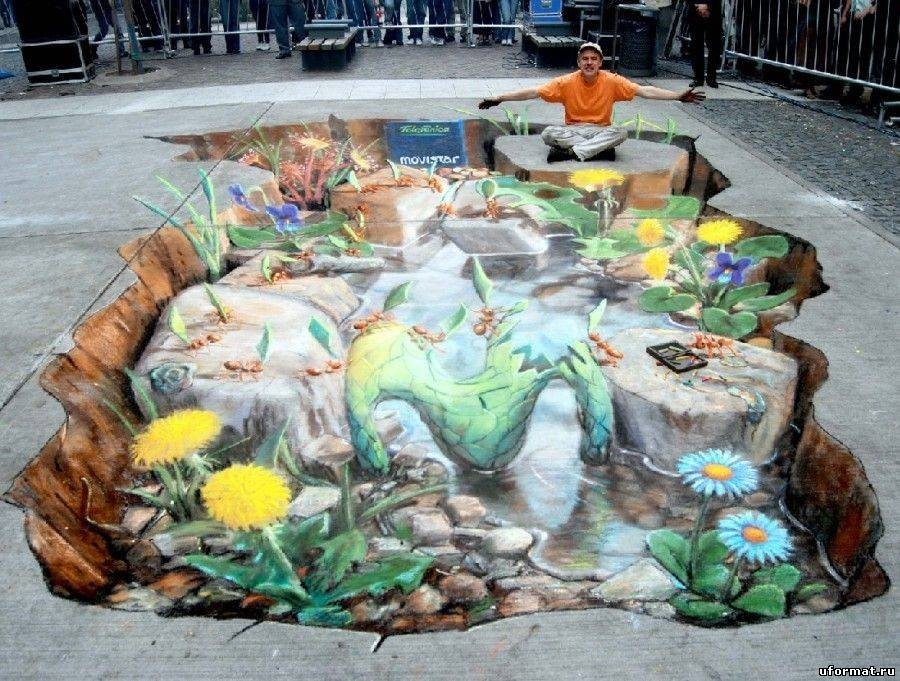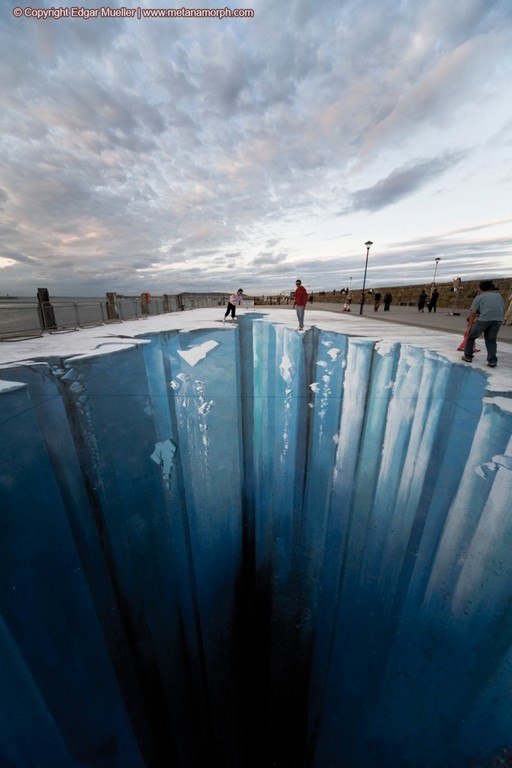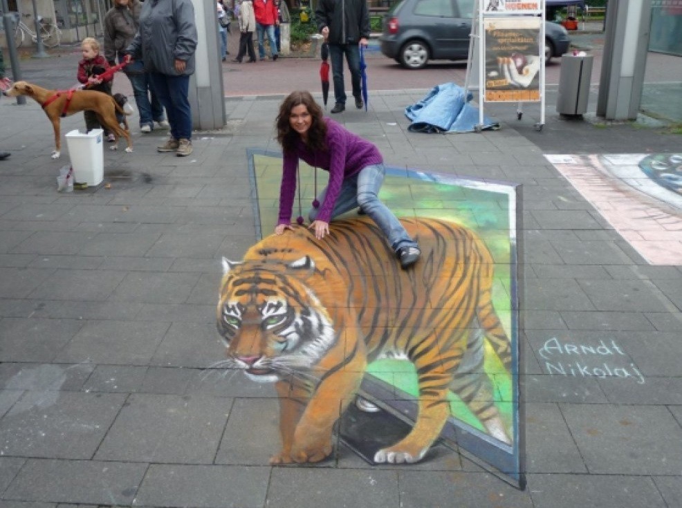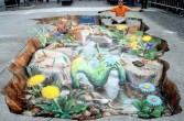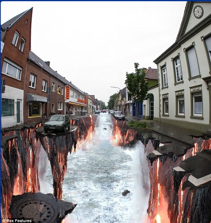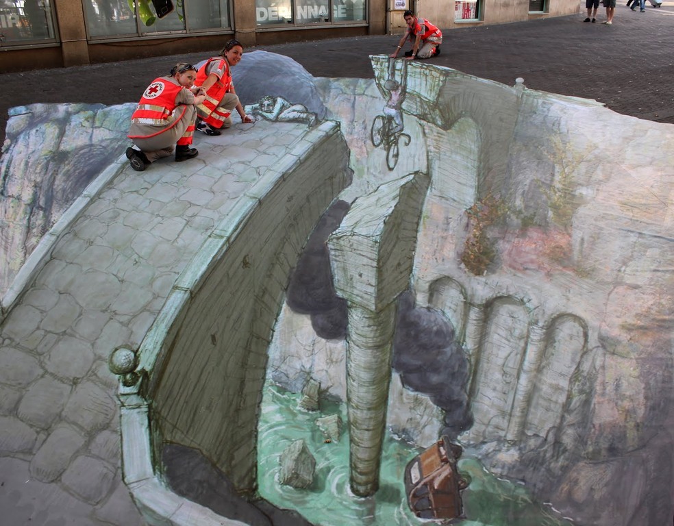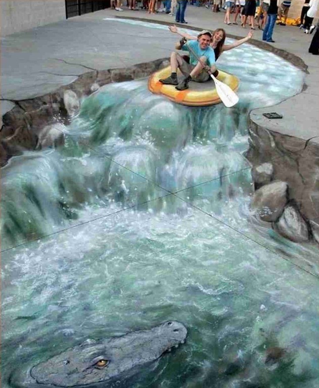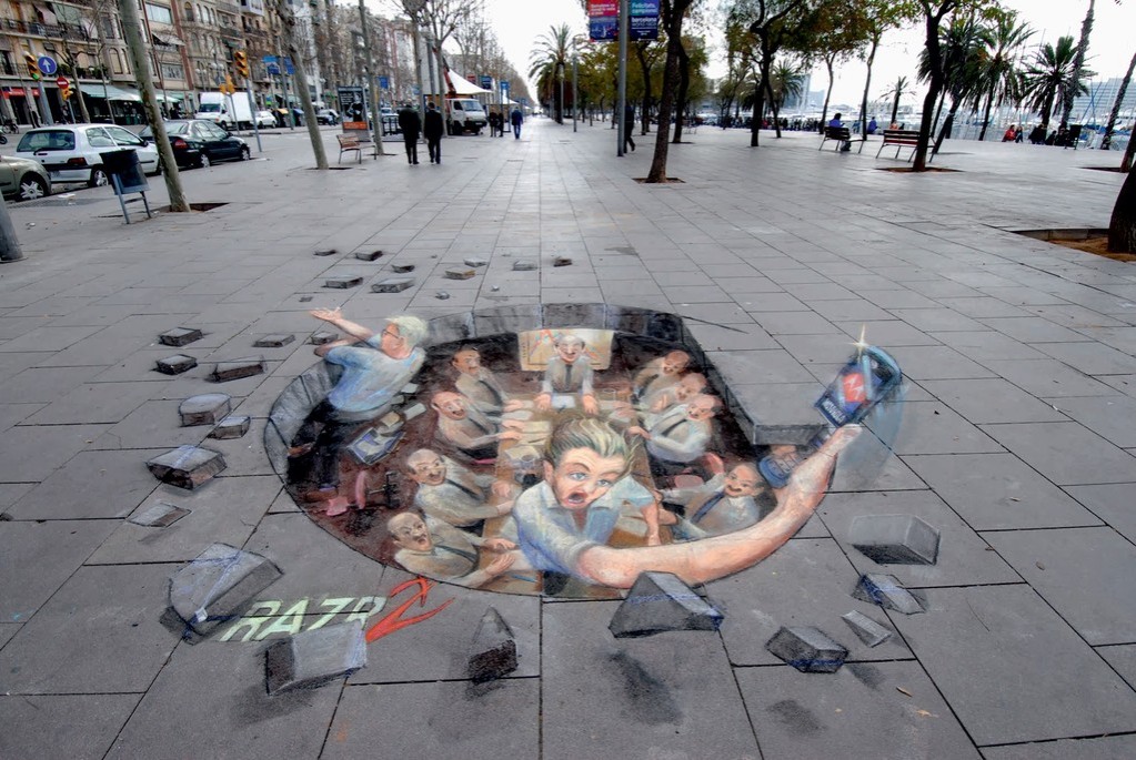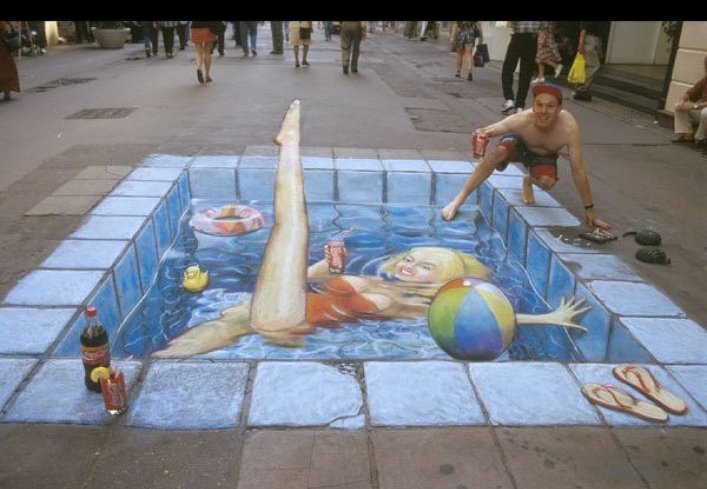 Sztuka wyszła na ulice i to w dosłownym tego słowa znaczeniu. Bardzo realistyczne malunki na chodnikach widziane z perspektywy, nabierają cech trójwymiarowości i powodują, że zastanawiamy się, czy iść dalej nie wpadając do wirtualnej dziury. Dzięki tym rysunkom ulice stają się bardziej kolorowe, a sztuka uliczna nabrała nowego znaczenia.