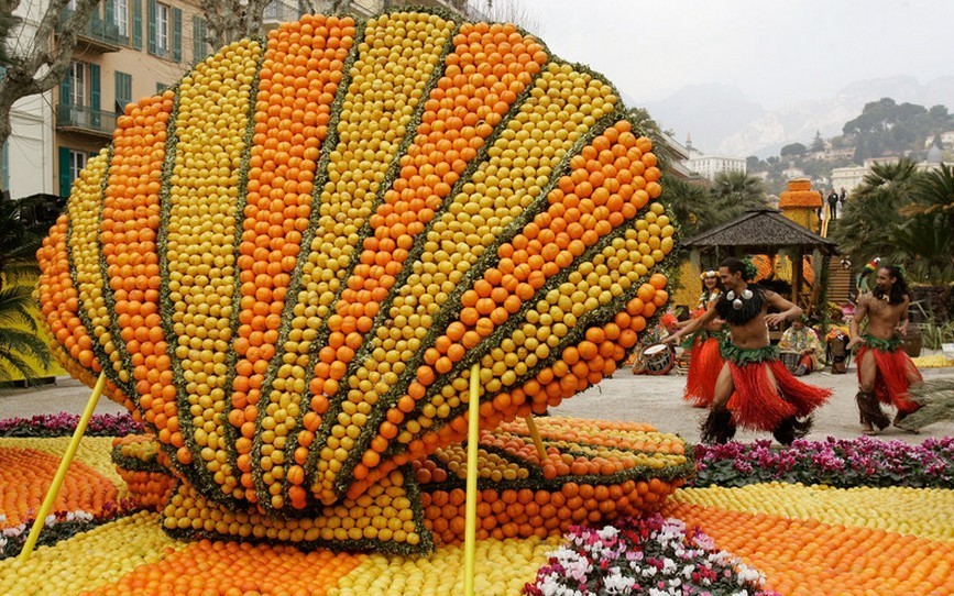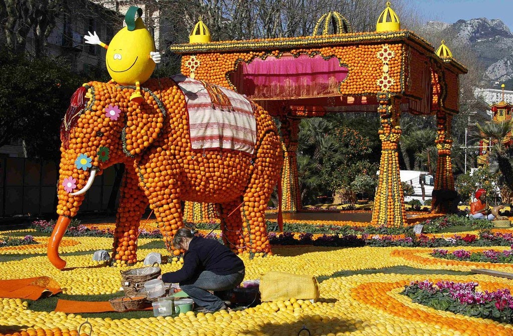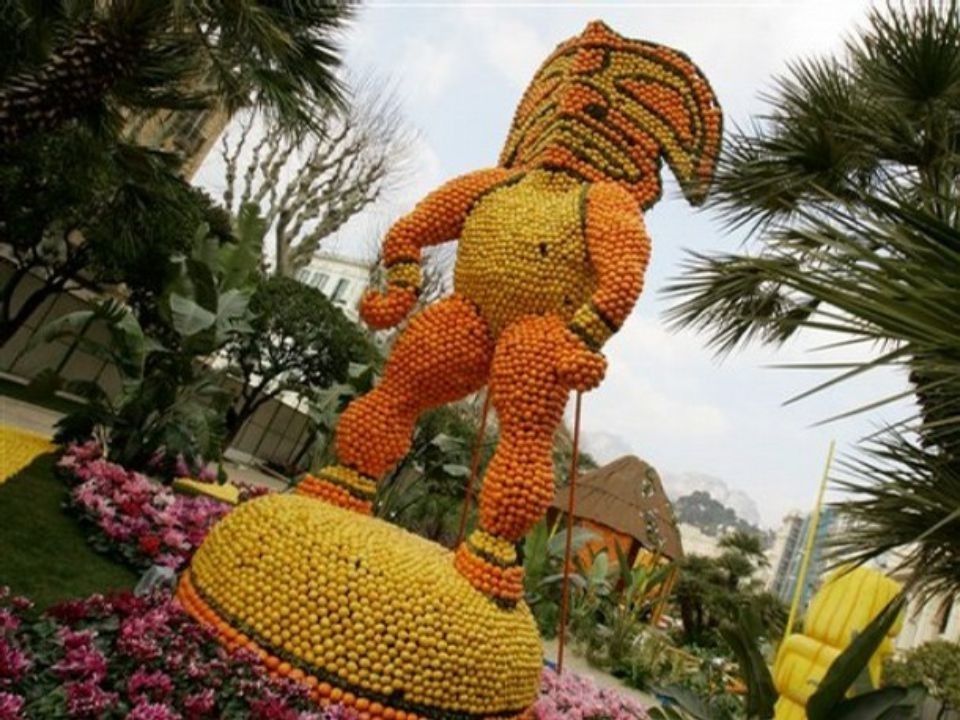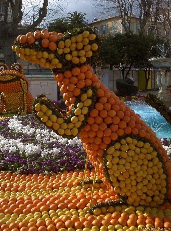 Otóż właśnie na poniższych zdjęciach przekonamy się, że można tworzyć z pomarańczy, cytryn i innych temu podobnych owoców nie tylko zabawne figurki, ale też układać z nich figury wielkie jak dom.