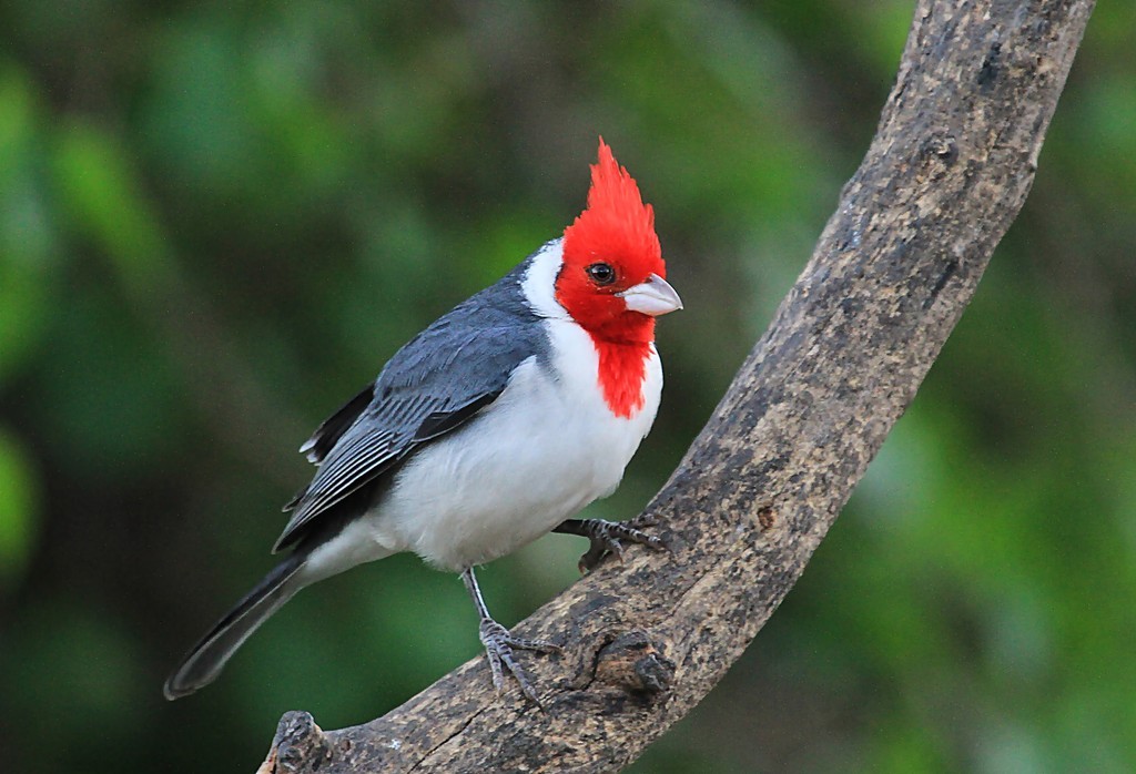Kardynałek czubaty ma bardzo atrakcyjny wygląd i wyróżnia się pięknym śpiewem. Z tego powodu jest chętnie hodowany w niewoli, nawet w Europie, do której trafił już w roku 1783. A trafił do nas z Ameryki Południowej. Żyje sobie tam w stanie dzikim w południowej części Brazylii i Boliwii, aż po środkową Argentynę w subtropikalnych obszarach, porośniętych zaroślami. Często można je spotkać w miejscu wyciętego lub zdegradowanego lasu.