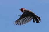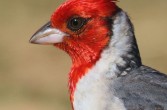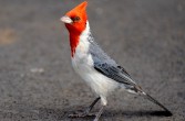 Charakteryzuje się jaskrawoczerwonym upierzeniem głowy, gardła i czubka, który stroszy od czasu do czasu. Żywi się nasionami i pąkami drzew i krzewów. Od czasu do czasu przekąsza owadami.