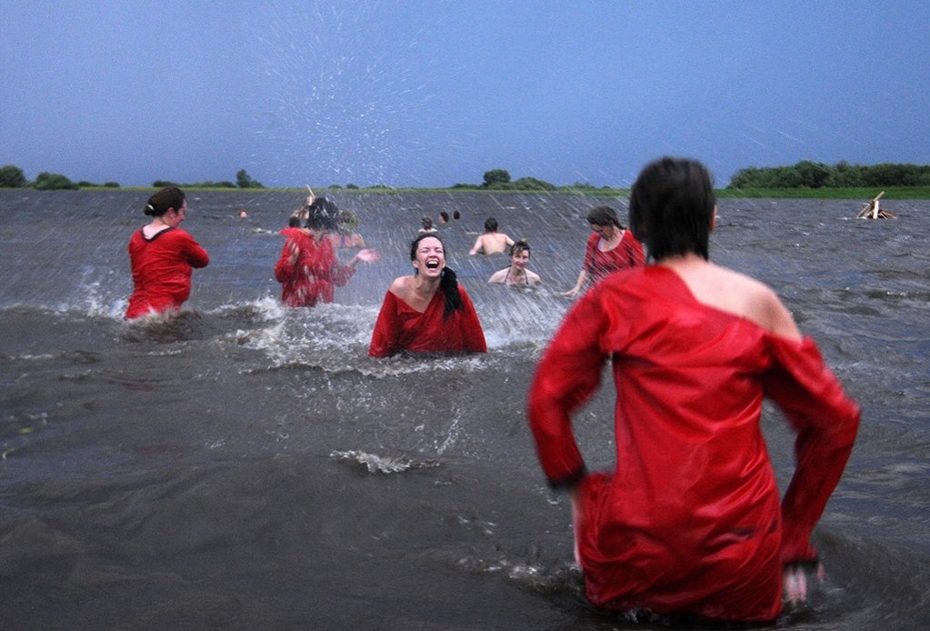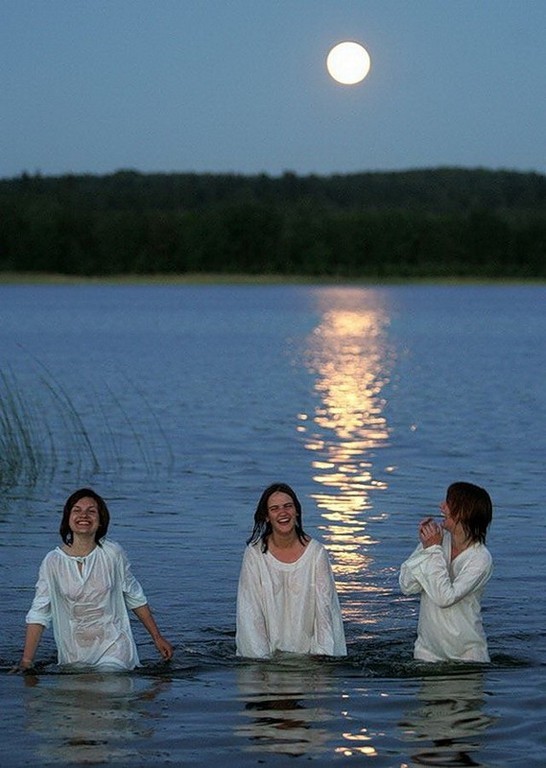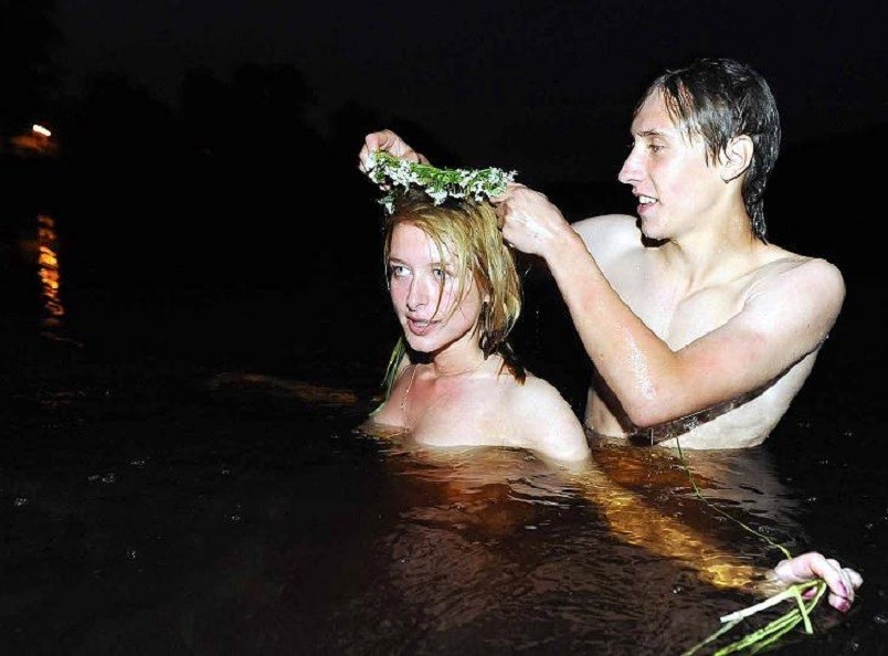 W Noc Kupały, często młode panny, również młodzi kawalerowie (ale oczywiście panny częściej) kąpią się w rzece lub jeziorze, bardzo często nago, ale również w ubraniach, a potem tańczą przy ogniskach do białego rana. Czar tej wyjątkowej nocy sprawia, że uciechy nie mają końca, a i odpuszczenie grzechów wszelakich tej nocy obowiązuje.