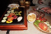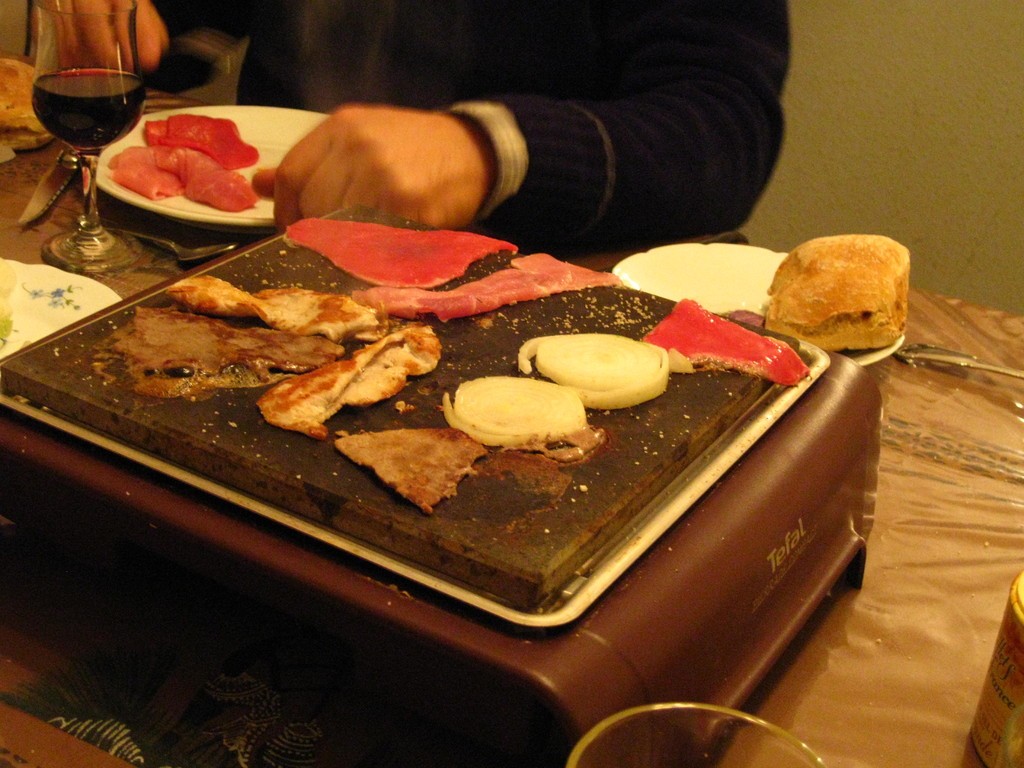 Rozgrzewamy urządzenie, a kiedy już jest gotowe do pieczenia, lekko solimy powierzchnię. Czynimy to dlatego, aby mięso nie przywierało do kamienia. Co możemy piec i jak przyrządzać surowiec? Mięso tniemy na plastry. Grubość i wielkość zależy od naszej inwencji. Możemy przedtem je wstępnie zamarynować, ale niekoniecznie. Bardzo smaczne jest mięso nieprzyprawione uprzednio. Najlepiej jest przygotować różne rodzaje mięs, aby każdy mógł we własnym zakresie sam sobie je przygotować w sposób, jaki najbardziej lubi.