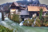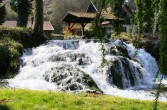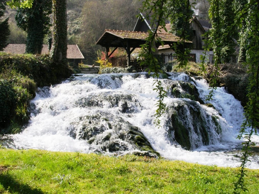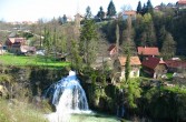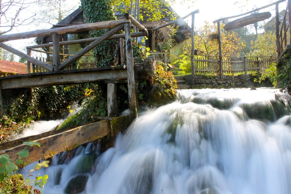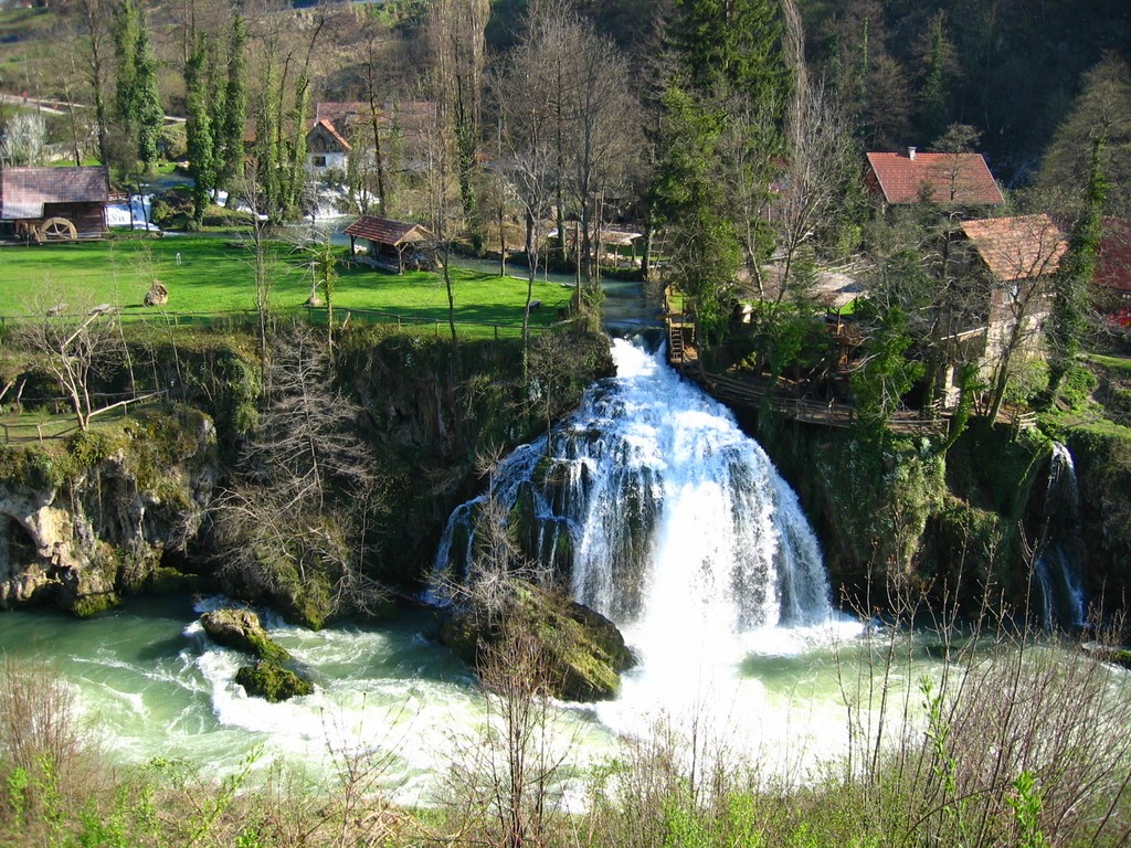 Człowiek wykorzystał to zjawisko przyrodnicze, połączył wysepki mostkami i groblami, oraz wybudował młyny wodne i domy mieszkalne, które stworzyły miasteczko Rastoke. Jeszcze 100 lat temu młynów tych było prawdopodobnie około setki. Teraz pozostało zaledwie kilka. Jednak miejsce to nie straciło nic ze swojej urody. Przyjemnie jest posiedzieć przy chłodnym napoju i gorącym odojaku w którejś z knajpek leżących pośród ryczących strumieni.