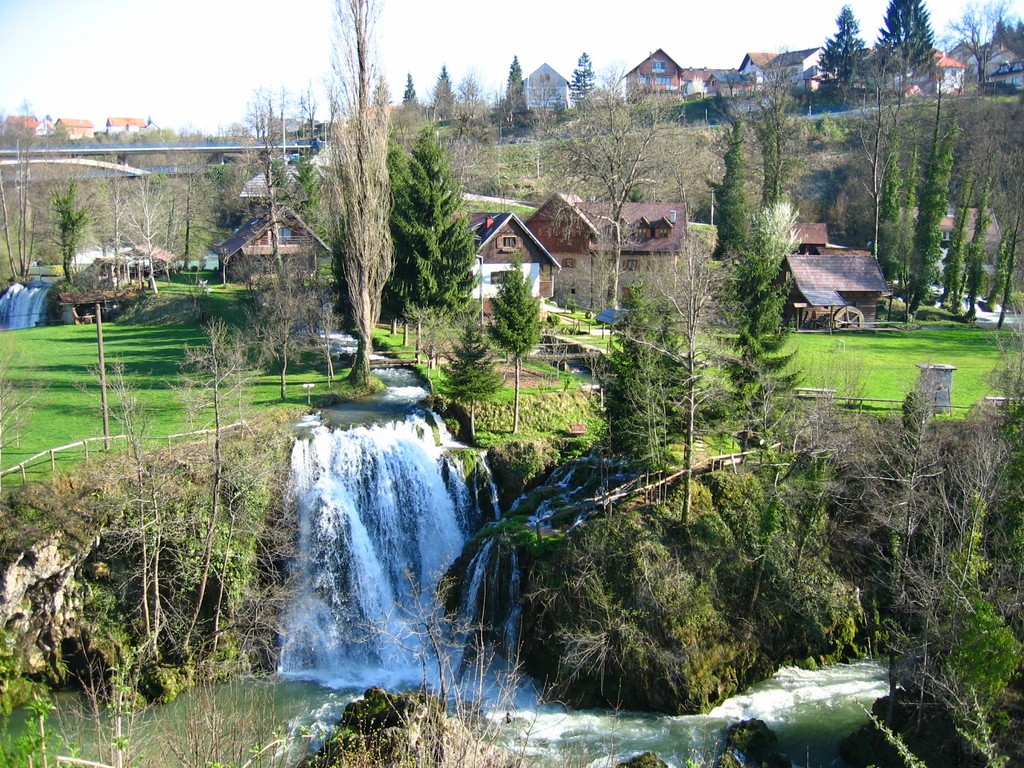 Leży ono w miejscu, w którym łączą się biegi dwóch rzek. Rzeka Slunczica wpada do Korany. Może nic nie byłoby w tym dziwnego, gdyby nie fakt, że Slunczica leży o 20 - 50 metrów wyżej niż Korana. Jest to cud natury, prawdopodobnie jedyny taki w Europie. Poprzez tysiąclecia nurty tych rzek wyżłobiły w otaczających skałach wiele wysepek, wśród których płyną rwące potoki wody, które następnie z szumem spadają wspaniałymi wodospadami do Korany.