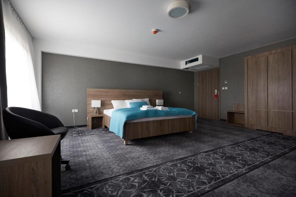 Hotel Porto oferuje 80 nowoczesnych, klimatyzowanych pokoi jedno-, dwu- i trzyosobowych oraz apartamenty — łącznie ponad 200 miejsc noclegowych. Każdy pokój wyposażony jest w szybkie Wi-Fi, telewizor, wygodne łóżka i funkcjonalną łazienkę. To idealna przestrzeń na regenerację — zarówno po długiej podróży, jak i po dniu pełnym aktywności.