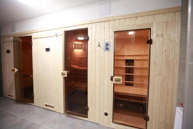Goście mogą korzystać także ze strefy relaksu z saunami i leżakami oraz z siłowni dostępnej przez cały pobyt.