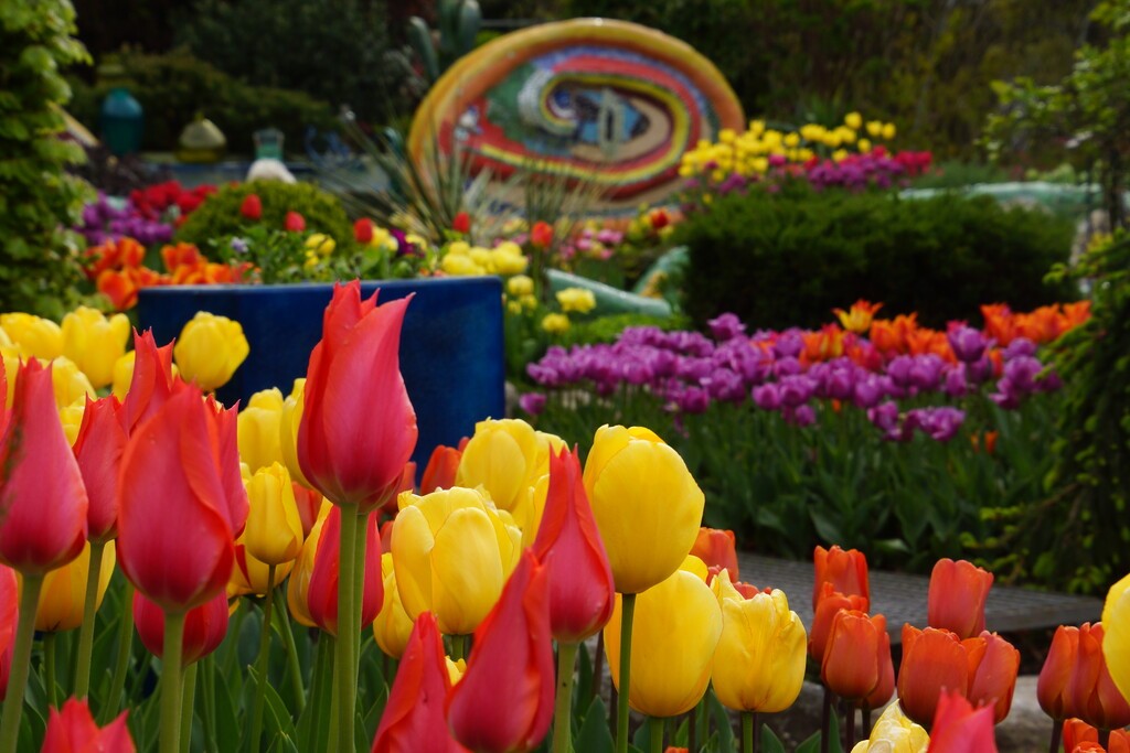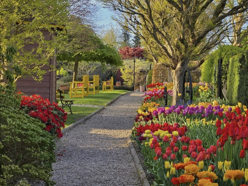 Wiosną – od marca do maja – można podziwiać bajeczny, kwiatowy spektakl. Zakwitają tysiące tulipanów, narcyzów, hiacyntów, wrzośców i wczesnych bylin we wszelkich możliwych kolorach i oryginalnych, niespotykanych kształtach, wypełniając wszystkie zakątki ogrodów.