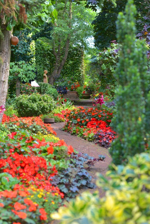 W upalne lato znajdziecie Państwo schronienie przed piekącym słońcem na zacienionych ławeczkach, wśród tysięcy kwiatów rabatowych, letnich bylin oraz wspaniałych kolekcji róż w wielu odmianach.
